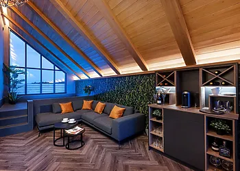 - Vaulted open-plan living space